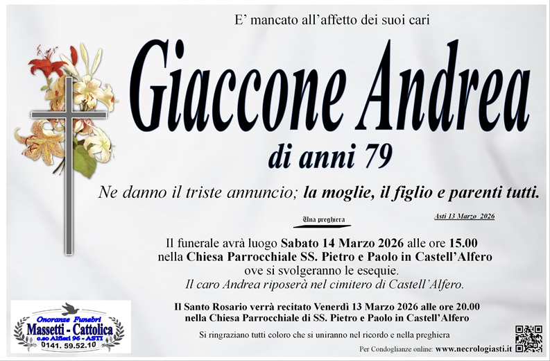 I familiari ringraziano anticipatamente tutti coloro che parteciperanno alla cerimonia funebre e tutti coloro che scriveranno con affetto un Pensiero di Ricordo.